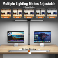 80 cm double head design: the dimmable LED desk lamp has a double lamp head design and the light strip can be extended to 80 cm, which is enough to illuminate your entire work area evenly. The light stick folds down and used as a side light, so you can focus better on a specific work area. One light has multiple uses and is very suitable for reading, working, learning, painting, sewing, crafts, etc.